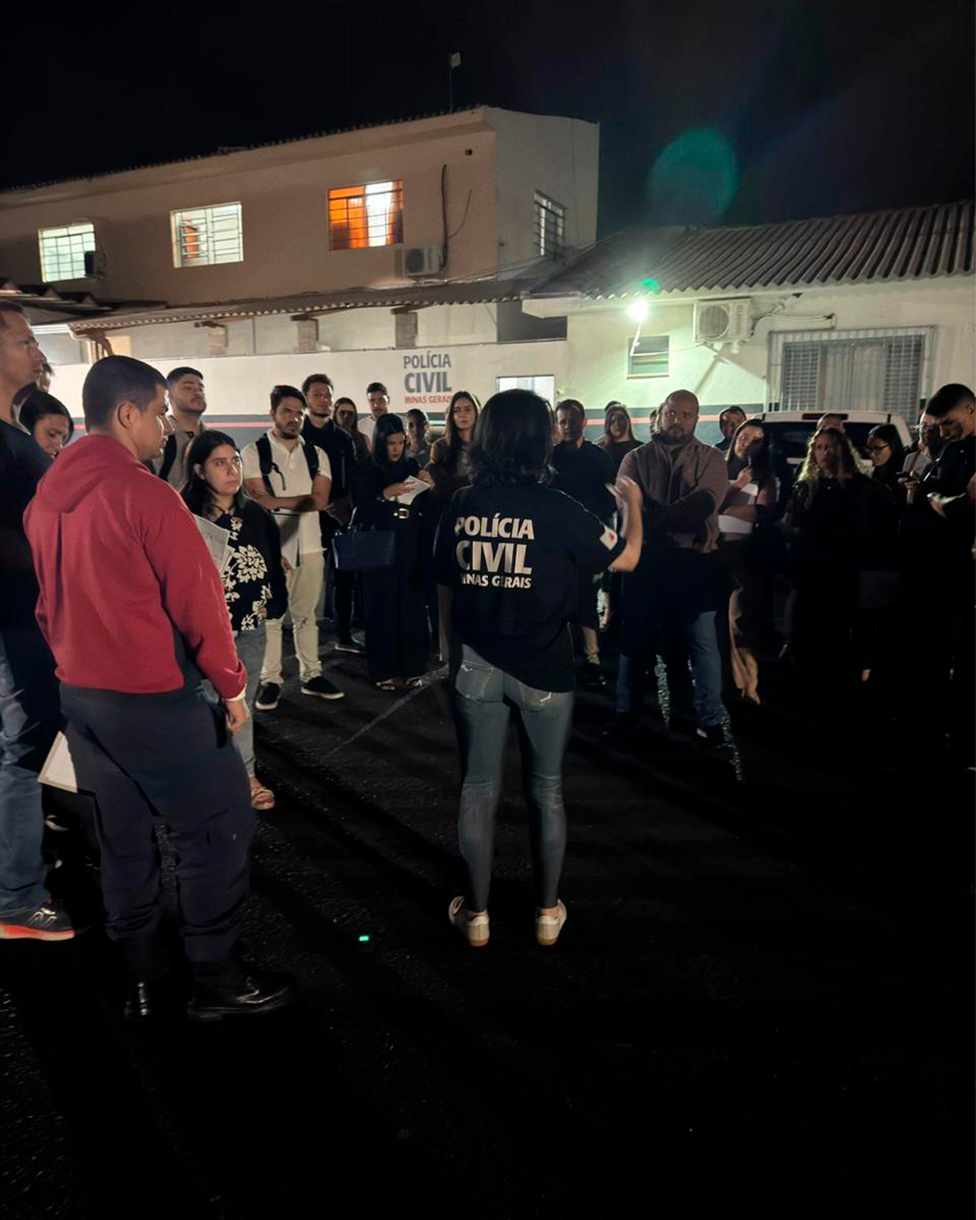 A turma foi recebida pela Delegada de Plantão, Dra. Gabriela Damasceno, que apresentou o funcionamento da unidade, os procedimentos adotados pela equipe e os principais aspectos da atuação da Polícia Civil na esfera penal. A visita também contou com um momento de diálogo aberto, no qual dúvidas foram esclarecidas e situações reais foram debatidas, ampliando a compreensão dos estudantes sobre a prática jurídica.