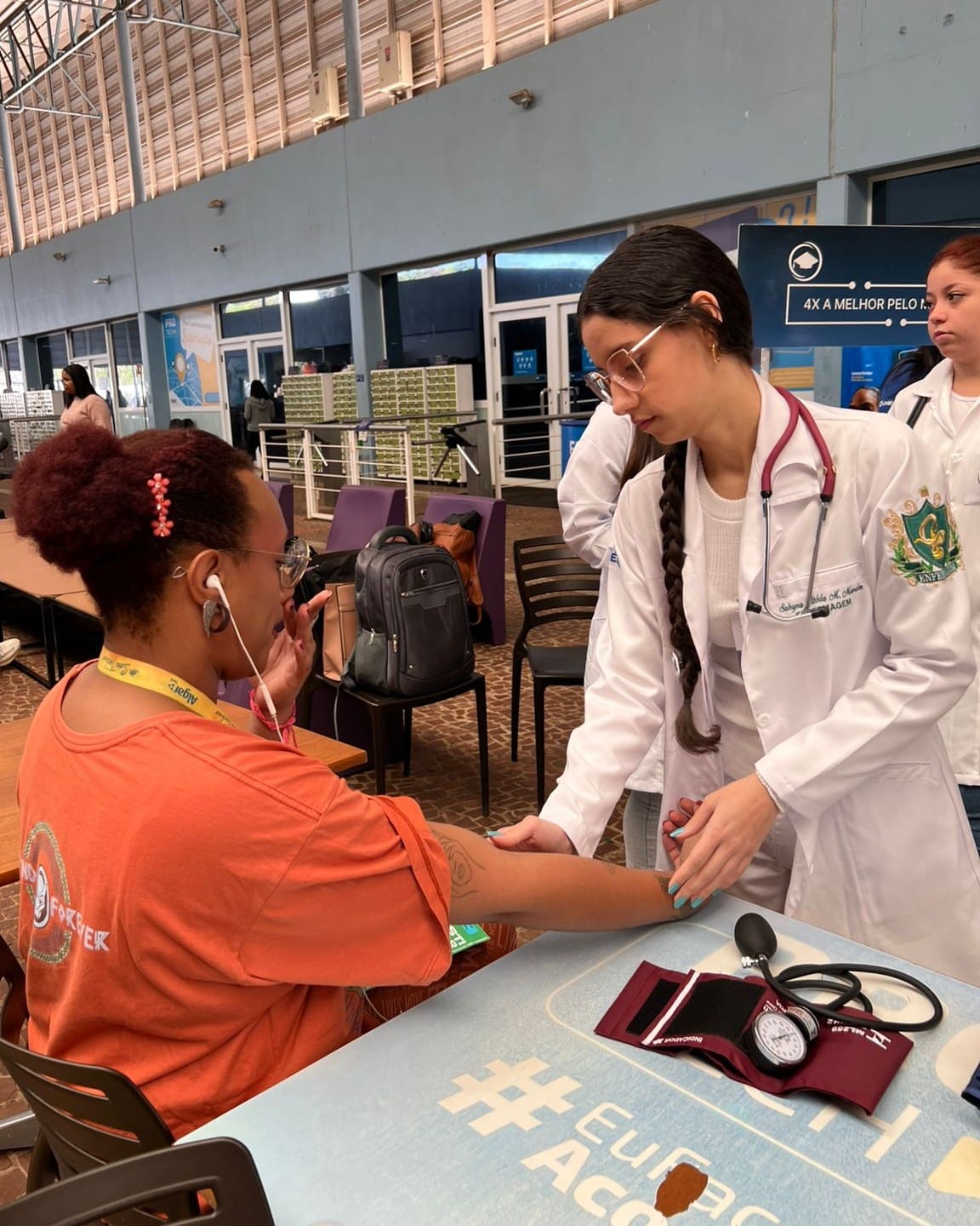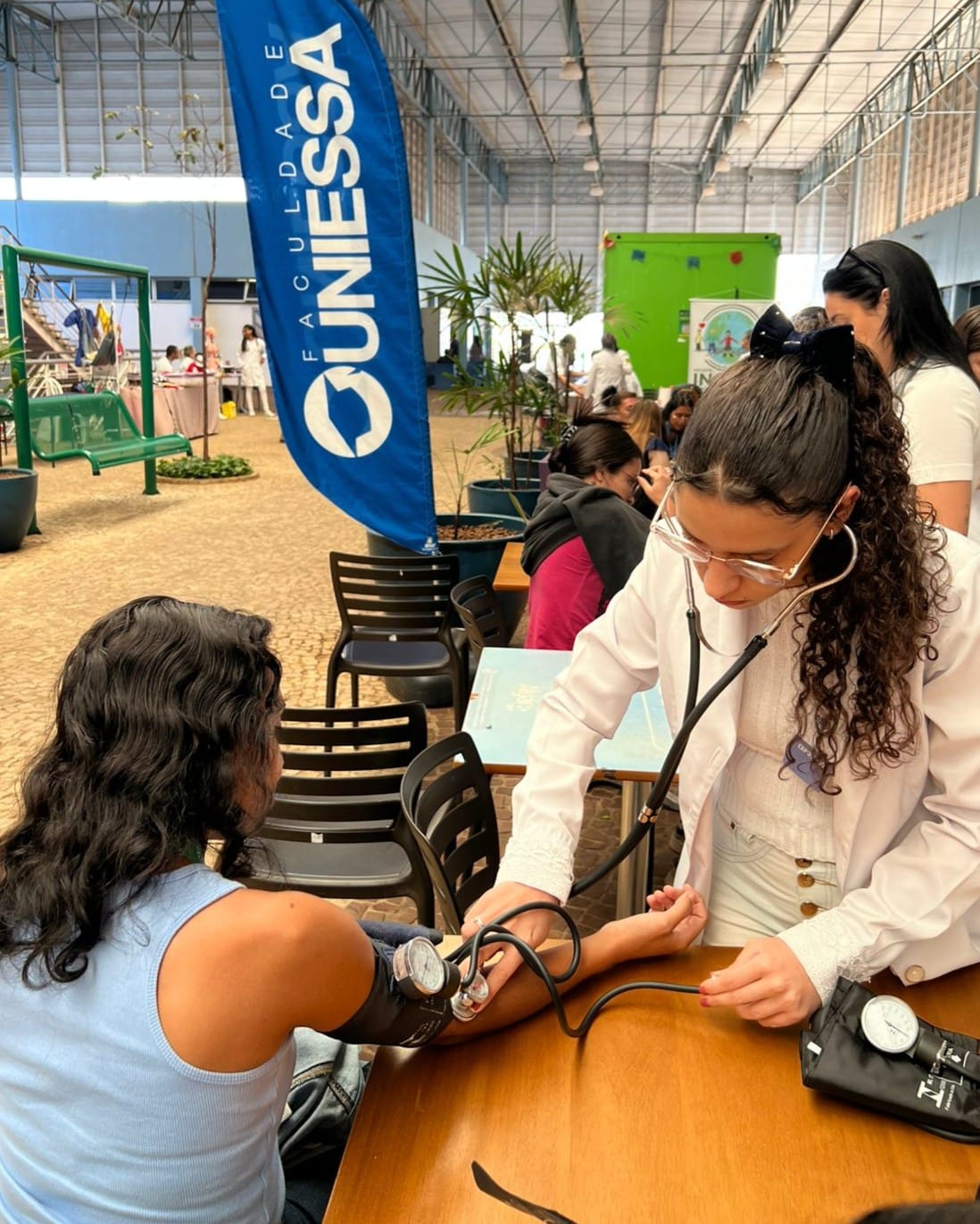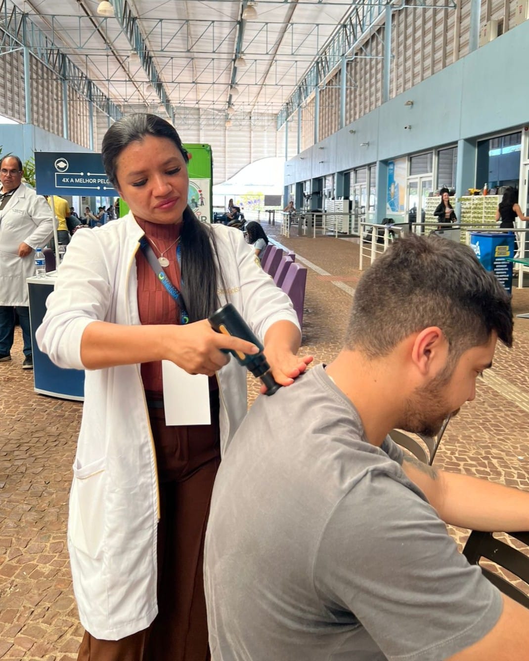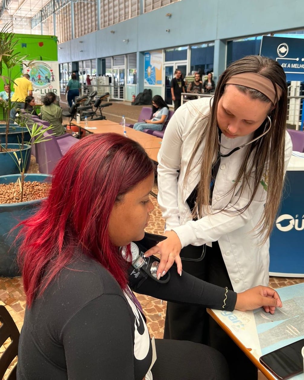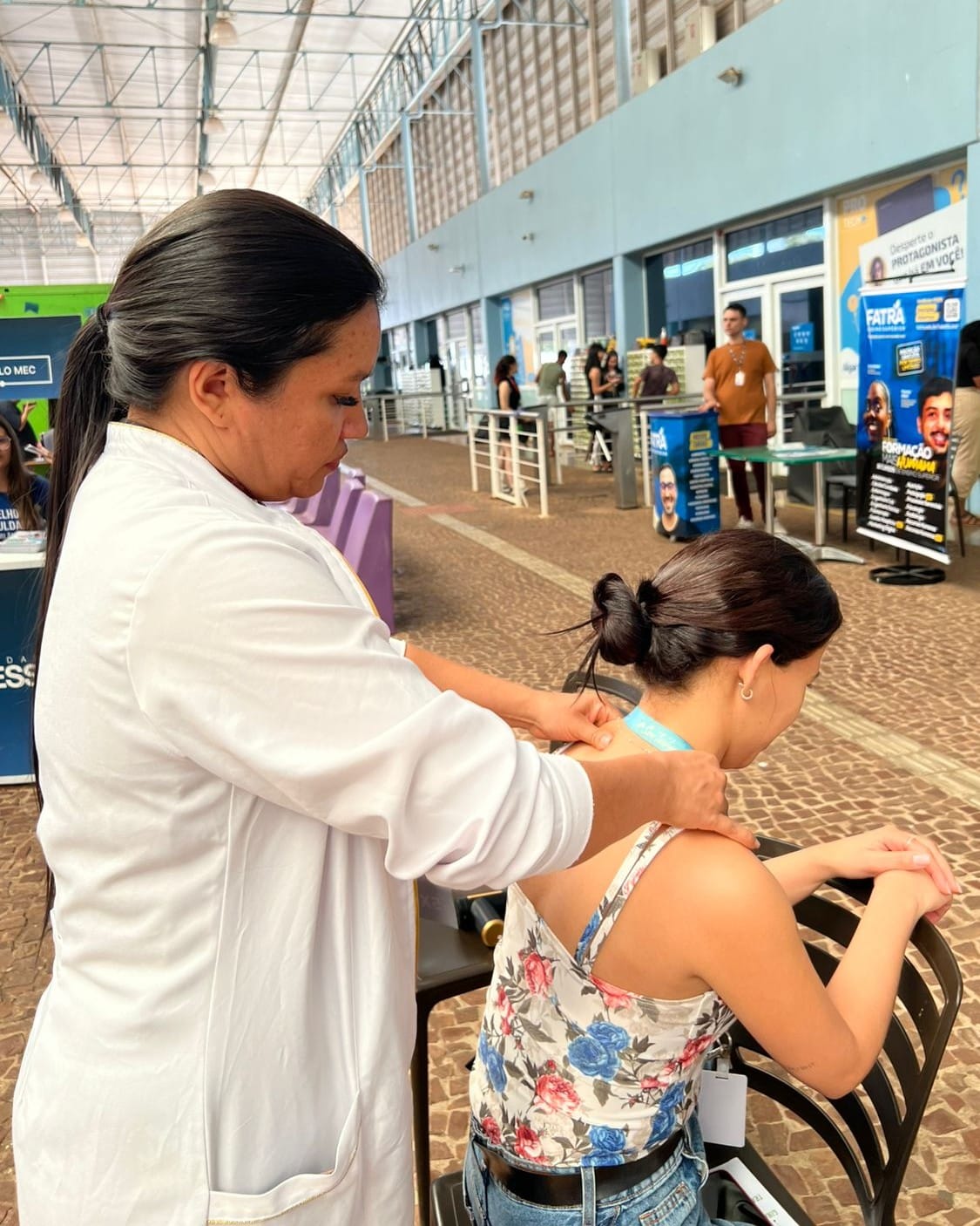 Durante a iniciativa, foram realizadas aferições de pressão arterial, além de sessões de massagem e alongamentos, que ajudaram a reduzir a tensão do dia a dia e promoveram momentos de relaxamento. Para os estudantes, a experiência foi uma chance de vivenciar situações reais de atendimento, fortalecendo a prática profissional e a relação com a comunidade.