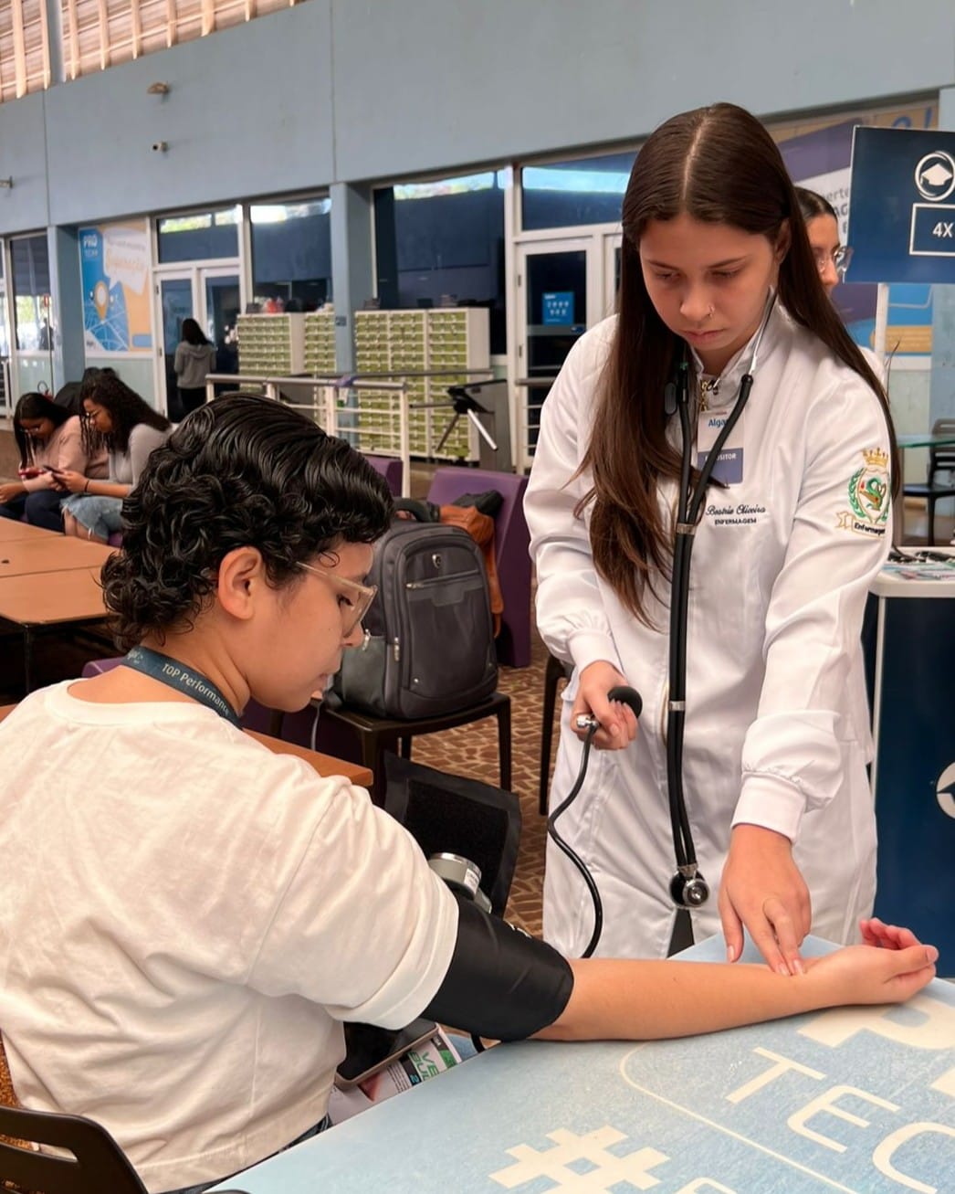 Nossos alunos dos cursos de Enfermagem e Fisioterapia tiveram a oportunidade de colocar em prática seus conhecimentos em uma ação especial realizada na Algar Tech. O objetivo foi levar saúde, cuidado e bem-estar diretamente ao ambiente de trabalho, proporcionando aos colaboradores uma pausa para cuidar de si.