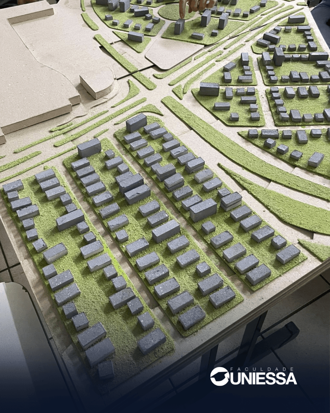 Uma das atividades em destaque é a produção da maquete do entorno do terreno, etapa que permite aos estudantes compreender, de forma tridimensional, como o projeto se relaciona com a cidade. Durante esse processo, eles analisam aspectos como implantação, volumetria, fluxos, sistema viário e áreas verdes.