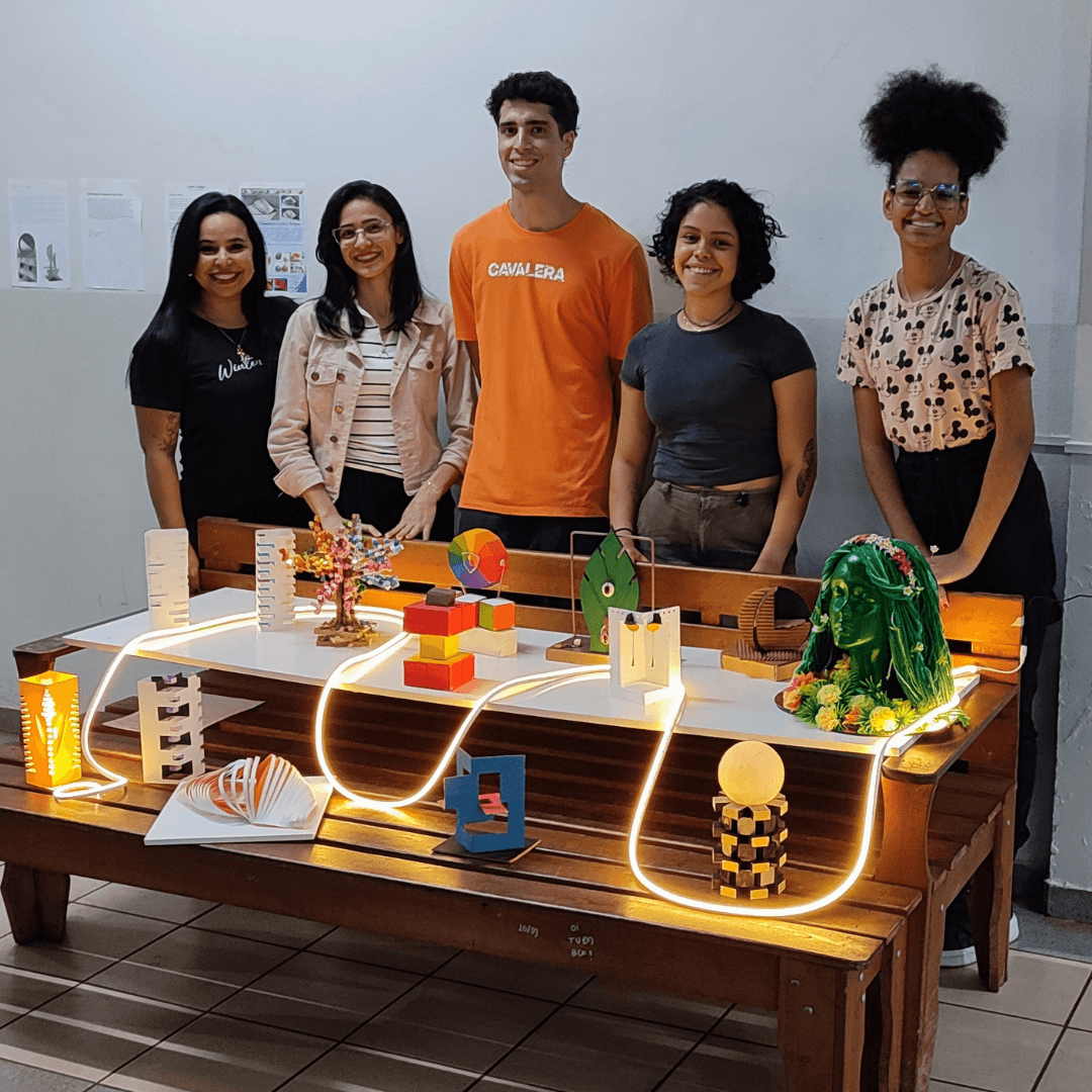Na disciplina de "Modelos e Protótipos", ministrada pelo professor Hugo Resende, os trabalhos tiveram como base tijolos vazados em gesso realizados a partir de moldes, modelo de frascos e caixa para perfume realizados por modelagem subtrativa em esponja floral e barra de sabão e cortes e dobras de papel cartão.