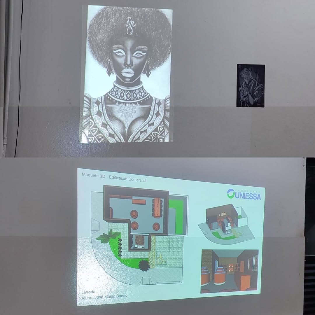 Além disso, houve a exposição dos projetos gráficos e das maquetes 3D dos interiores do espaço de fisioterapia e de alguns espaços comerciais das disciplinas de "Projeto II", ministrada pelo professor Hugo Resende, e "Software 3D", ministrada pela professora Larissa Riza.