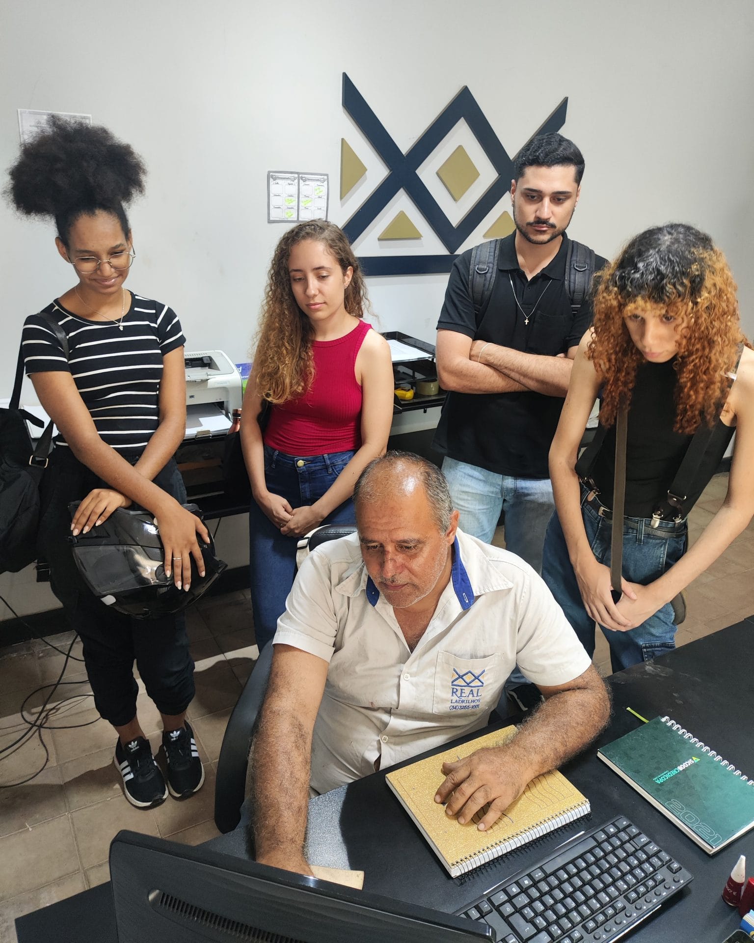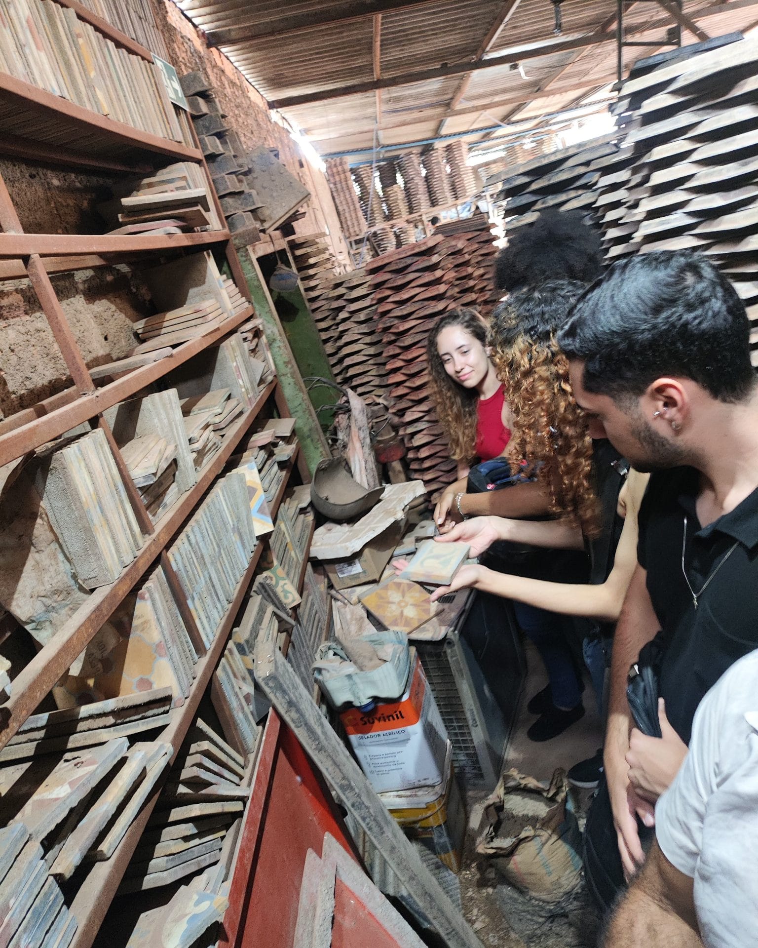 Na Real Ladrilhos, recebidos pelo proprietário Renato, eles conheceram os modelos disponíveis e observaram o processo de produção e finalização dos ladrilhos hidráulicos e peças cimentícias para pisos e paredes, desde o desenho até a moldagem e secagem.