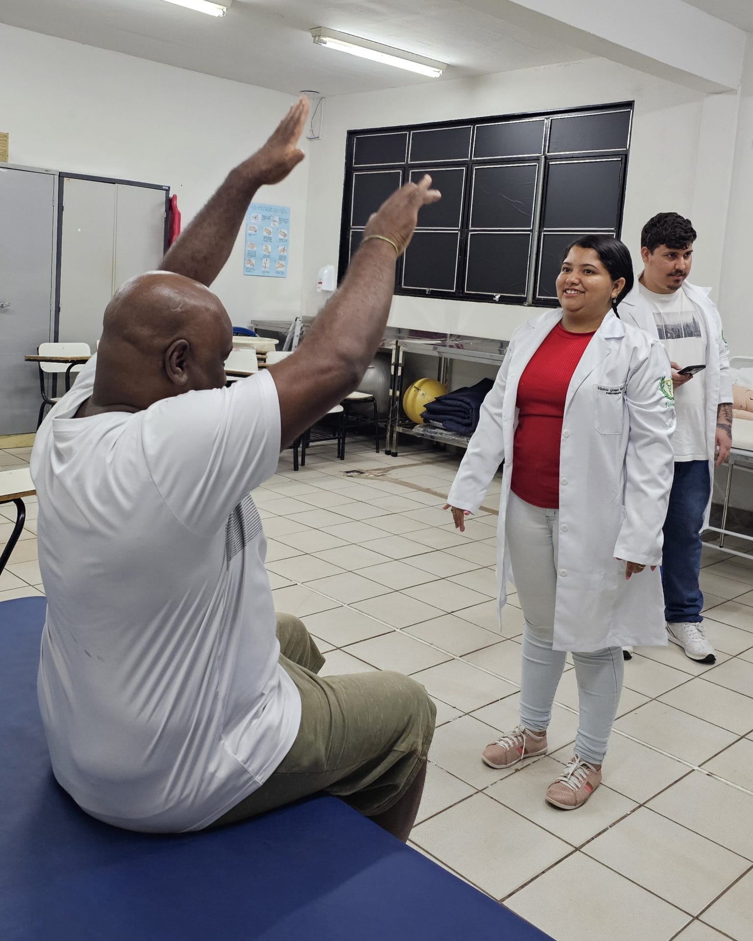 Durante a atividade, os estudantes conheceram os pacientes, realizaram avaliações individuais, exercícios e alongamentos e aferição da pressão. Um momento rico de aprendizado, cuidado e desenvolvimento das habilidades que farão toda a diferença na atuação profissional.