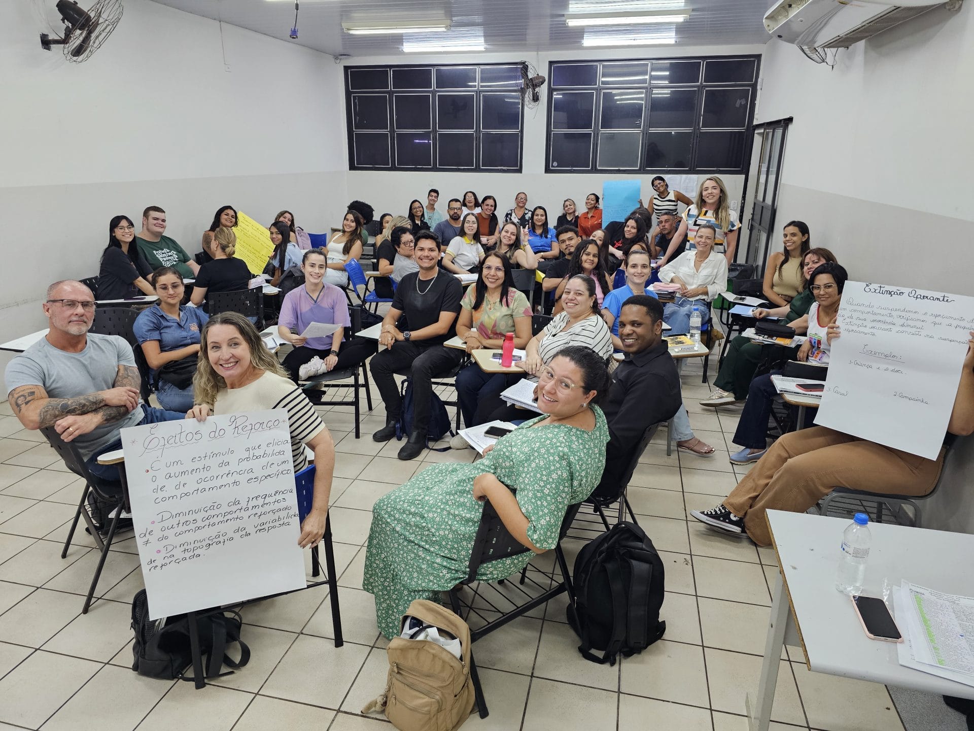 Durante a aula, conceitos fundamentais como modelagem, consequências, reforço e extinção foram mais do que explicados: foram experimentados em situações reais e simuladas, permitindo aos estudantes compreenderem de forma concreta como esses princípios se aplicam no comportamento humano e nas intervenções psicológicas.